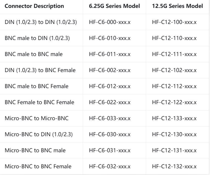 HF-C12-133-10.0 = Micro‑BNC to Micro‑BNC, 12G, 10 meters